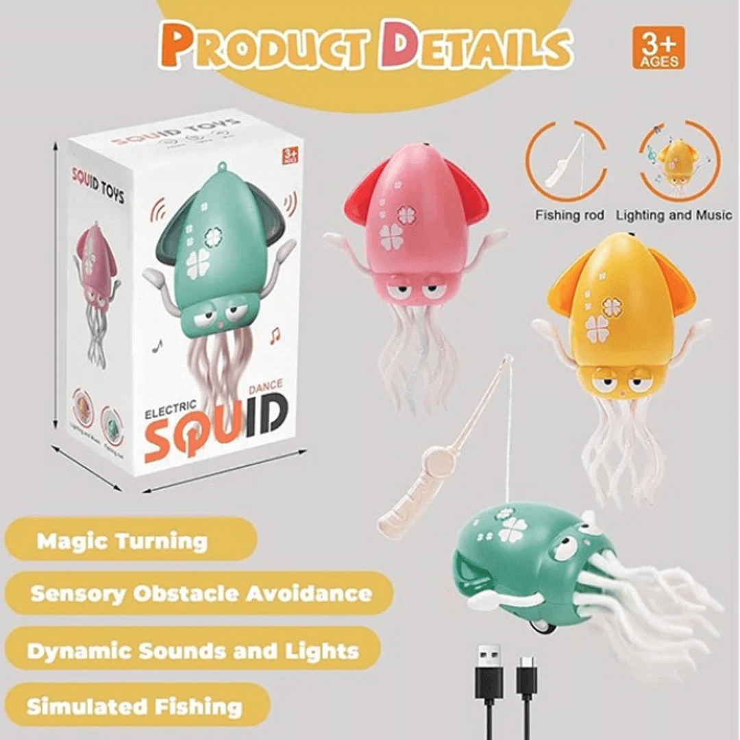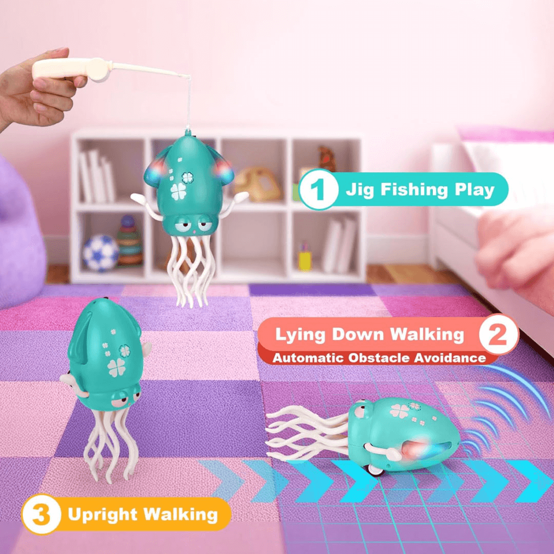 Oživite svaki kutak sobe sa interaktivnom igračkom Dancing Squid! Ova simpatična hobotnica se pomera uspravno i na leđima dok pleše uz zabavnu muziku i 3D osvetljenje. Inteligentni senzor omogućava joj da se odbija od prepreka i nastavlja svoj ples bez prestanka. Dolazi sa aksesoarom – malom pecaljkom, za dodatnu zabavu.