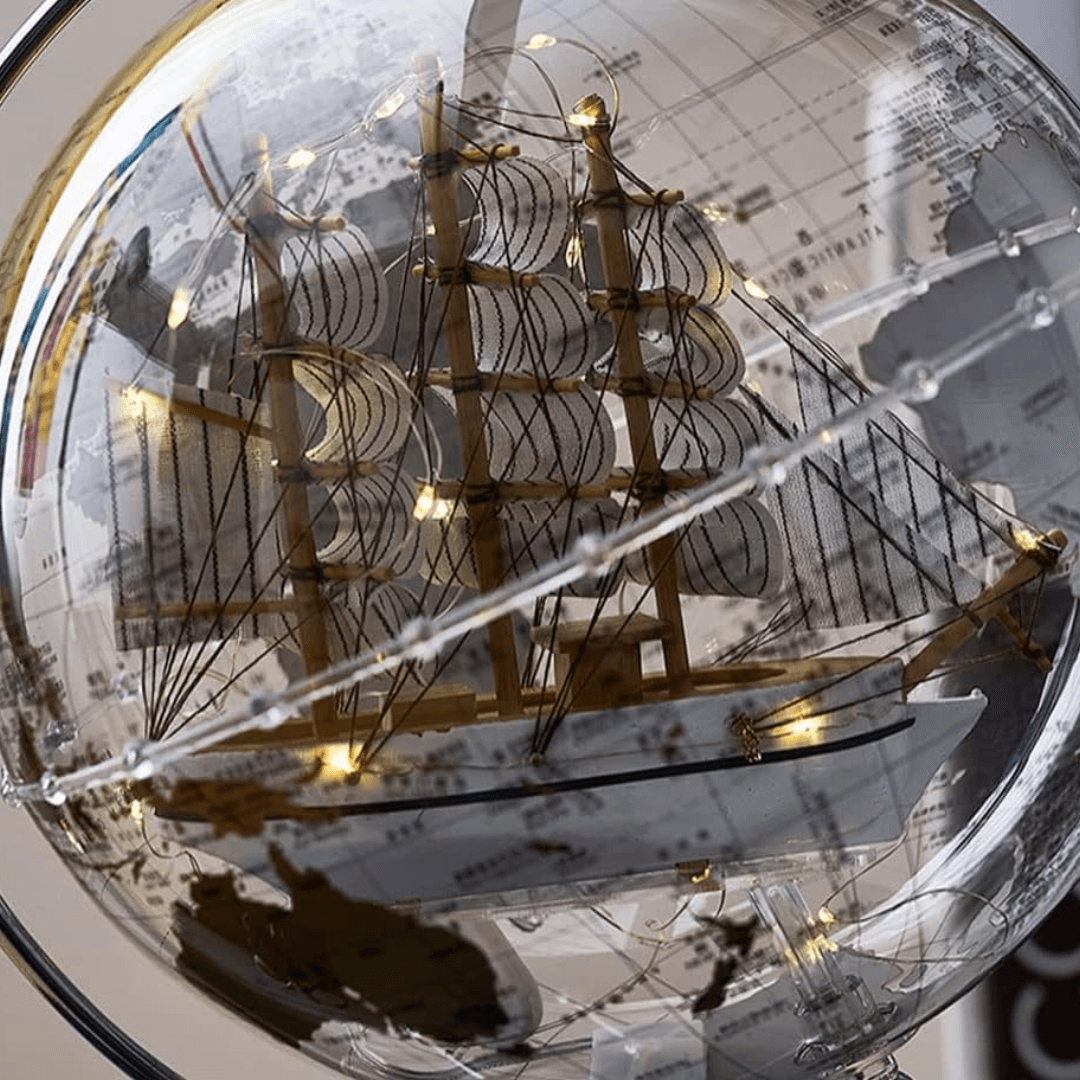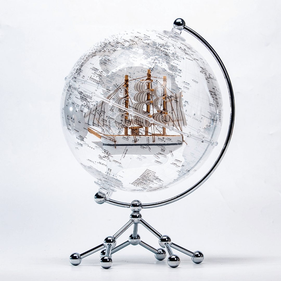 Stoni Globus Srebrni – Sa Brodom 25cm
